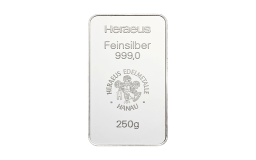 250 Gramm Silberbarren | Heraeus - geprägt
